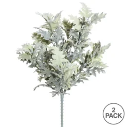 Vickerman 16″ Artificial Green Flocked Dusty Miller Bush, Set Of 2