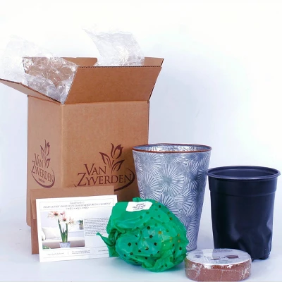 Van Zyverden Amaryllis Multicolored Flower Bulb With Flower Burst Metal Cachepot